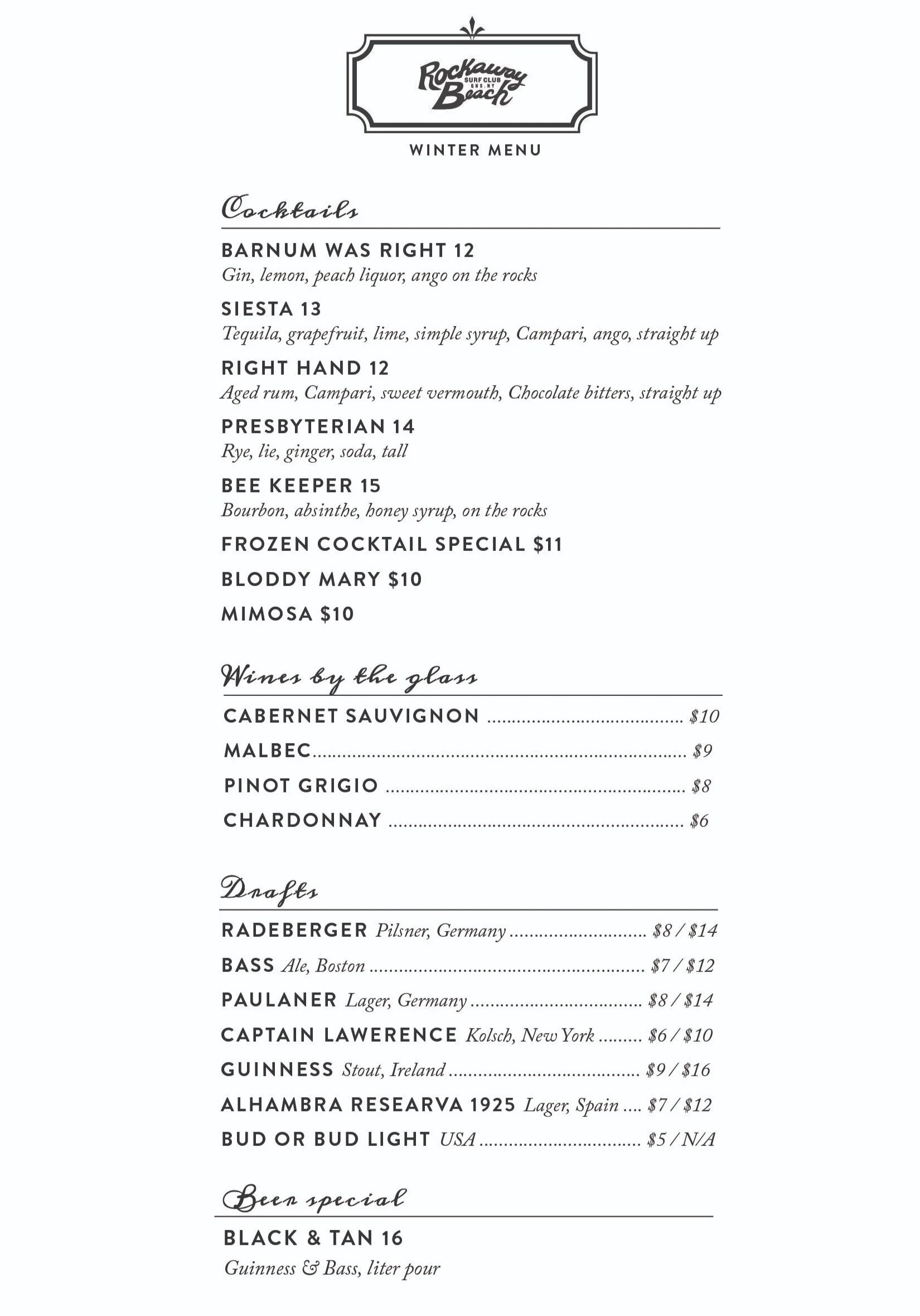 Drinks Menu WINTER